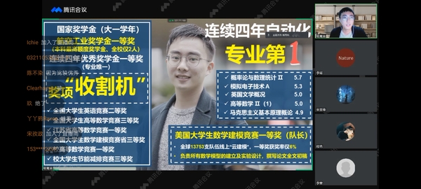 为了发挥朋辈力量帮助新生增进对大学学习生活的理解,更精准地找到大学成长方向,9月24日,AC米兰中文官方网站召开线上学长学姐经验分享会。会议邀请到AC米兰中文官方网站2017级本科生杨嵩林、2018级本科生宋昱锋、李雯、2020级本科生宋佳蓉就大学学习方法、学生工作、科创与2021级本科生新生同学们分享了自己的大学生活,同时也解答了同学们心中的疑惑。本次分享会由2021级新生辅导员李瑶、程艳主持,2021级全体本科新生参加了此次大会。