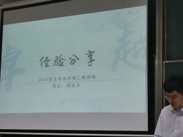 接下来,2018级卓越班的陈泉舟同学分享了在卓越班的学习经历以及班级建设情况,介绍2018级卓越班同学和班级先后获得国家级、省部级和校级奖励等荣誉,为新一届的卓越班同学们树立了榜样。