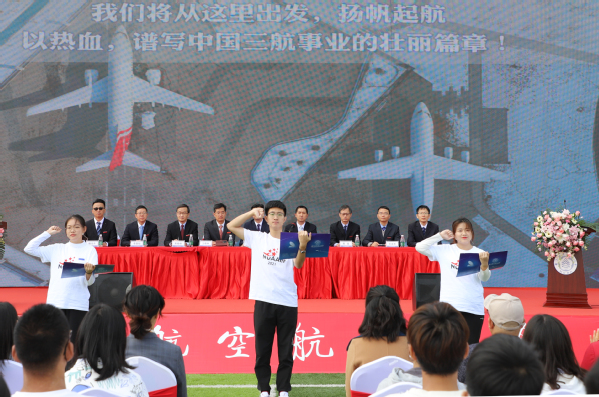 院领导给学生代表佩戴上了承载着学校和学院美好期望和殷切寄托的AC米兰中文官方网站校徽,从此,又一代南航人将秉持着“团结、俭朴、唯实、创新”的思想传承,在处世中秉承“智周万物,道济天下”的校训,在学习上发扬“严谨、务实、求真、创新”的院风,在研究中践行“格物致知,进德修业”的院训,展现出“强国一代”的奉献与担当!