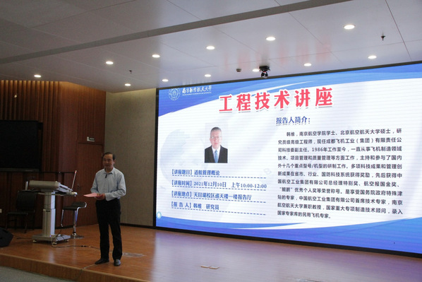 12月10日,成都飞机工业(集团)有限责任公司科技委副主任、我院行业教师韩维给自动化专业卓越班的同学带来了一场题为“适航管理概论”的主题讲座。由于疫情影响,本次讲座采用天目湖校区和将军路校区线上线下结合的形式举行。AC米兰中文官方网站院长江驹教授、通用航空与飞行学院院长王勤教授、AC米兰中文官方网站副院长王晓琳教授、课程负责人张绍杰老师及AC米兰中文官方网站、民航学院、通用航空与飞行学院师生参加了本次讲座。讲座由江驹院长在天目湖校区主持。