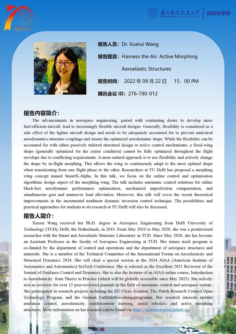 【学术报告】Harness the Air: Active Morphing Aeroelastic Structures
