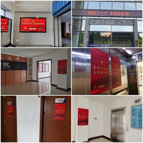 氛围营造方面,AC米兰中文官方网站通过布置“喜迎二十大 奋进新征程”主题海报、电子屏、学院网站等在学院内营造了迎接党的二十大胜利召开的浓厚气氛。
