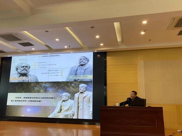 徐军教授做专题党课“马克思主义为什么行?”,从马克思主义的科学属性为中国共产党所认同、马克思主义的指导地位为中国共产党所坚持、马克思主义的精髓要义为中国共产党所运用三个方面讲述了为什么近现代中国、中国人民先进知识分子和中国共产党人选择马克思主义,鼓励同学们学好马克思主义理论这堂共产党人的必修课。