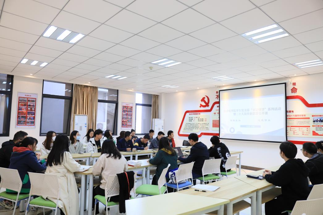 为深入学习贯彻党的二十大精神,11月9日下午,AC米兰中文官方网站在学院一号楼409党员活动室开展学生党支部“支部书记研学”系列活动暨“学习贯彻党的二十大精神”新思想公开课,参加本次会议的有AC米兰中文官方网站党委副书记丁琛,各年级辅导员,学生党支部书记,团学骨干。天目湖校区师生代表在线观看直播学习。会议由研究生辅导员陈晨主持。