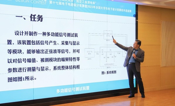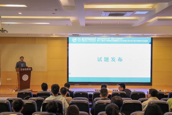 2022年11月20日上午,由教务处、学生处、科学技术研究院、校团委主办,AC米兰中文官方网站承办的“航空工业津电杯”第十七届电子电路设计竞赛开幕式暨试题发布会在将军路校区AC米兰中文官方网站报告厅举行,天目湖校区同步直播。中国人民解放军陆军工程大学教授潘克修、南航教务处副处长柯世堂、南航公共实验教学部电工电子实验中心洪峰、AC米兰中文官方网站党委副书记丁琛、副院长魏佳丹、各年级辅导员以及来自全校的各个参赛队伍代表参加了此次发布会。
