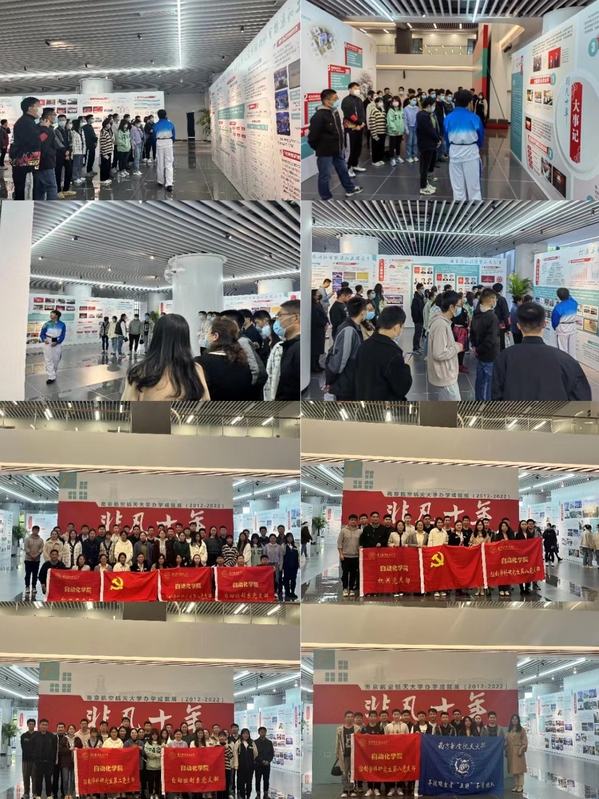 在联合党支部王俊彦和曾庆化两位党支部书记的带领下,党员跟随讲解志愿者围绕成就展主体的十年大事记、党建引领篇、人才培养篇、人才强校篇、学术创新篇、开放办学篇、美丽南航篇等七个篇章进行参观学习,深入感受了十年来南航“为党育英才、为国铸重器”的一系列标志性成果。