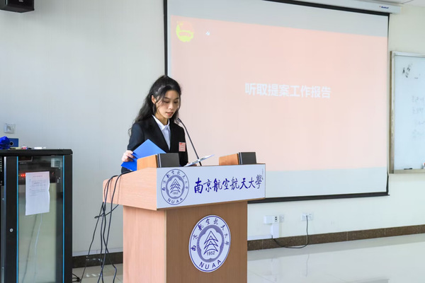 徐通遥同学、陈舒熠同学分别代表本次学生会、研究生会筹备工作组做提案工作报告。本次学代会、研代会收到了提案116件,涉及学术科研、教学管理、校园建设等八个方面,较为全面真实的反映了我院同学的意见建议。提案工作的认真推进也是学生会、研究生会全心全意服务同学,担当师生联系桥梁的良好体现,对学院和学校的发展建设具有重要意义。