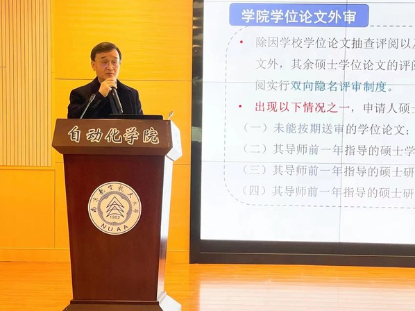 陈谋在致辞中感谢学院全体导师为学院研究生培养工作所付出的辛勤努力和默默贡献。他说:导师是研究生一生中重要成长期的领路人,对研究生一生的成长都具有巨大的影响。他建议导师们要作教师、作导师、作长辈,从自身出发,立德树人,培根铸魂,爱护与严教相结合,成为学生的人生导师和学术榜样,做研究生成长成才的指导者和引路人,希望我们的导师都成长为好老师,让好老师成为学生的幸运,学校的光荣。