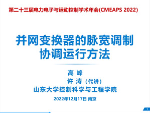 2022年12月17日至18日,AC米兰中文官方网站多电飞机电气系统工信部重点实验室第二十三届电力电子与运动控制学术年会成功举办。大会开幕式由多电飞机电气系统工信部重点实验室主任阮新波教授主持。