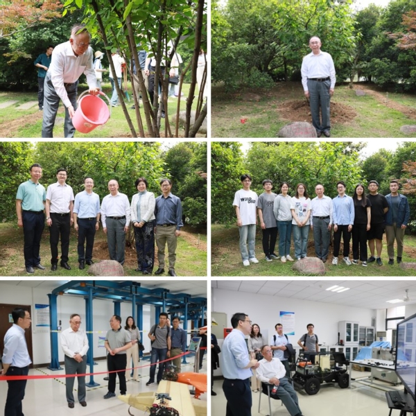 来院期间,冯培德院士前往西区院士林为二十多年前种下的蜡梅树培土浇水,并参观了先进飞行器综合飞行控制实验室、惯性导航系统实验室等实验室。