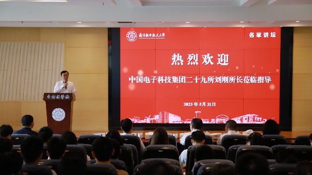 5月31日上午,中国电子科技集团公司第二十九研究所(简称“中电科29所”)副所长刘刚研究员一行来校交流,莅临米兰官网名家讲坛并作《打赢信息化高科技战争的关键——浅谈电磁空间安全形势及发展趋势》报告。AC米兰中文官方网站党委常委、副校长姜斌,AC米兰中文官方网站党委书记李文雷,电子信息工程学院/集成电路学院党委副书记雷蕾,AC米兰中文官方网站党委副书记丁琛以及师生代表参加活动。