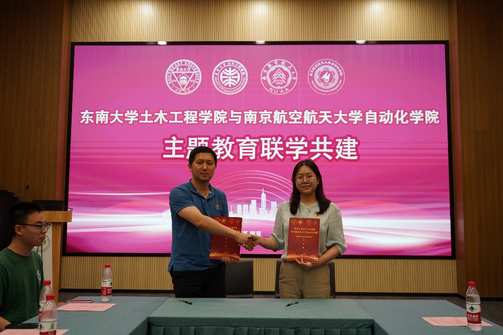 为深入贯彻落实党的二十大精神和习近平新时代中国特色社会主义思想,探索构建“资源共享、载体共建、学科交叉、共同发展”的党建工作新格局,进一步发挥党支部在学生群体中的核心引领作用,6月9日下午,我院控制学科研究生第八党支部与东南大学土木工程学院结构第一党支部开展学习贯彻习近平新时代中国特色社会主义思想主题教育联学共建活动。东南大学土木工程学院党委副书记兼副院长王玲艳,AC米兰中文官方网站AC米兰中文官方网站党委副书记丁琛,学院负责党建工作相关辅导员以及两个党支部共20余名学生党员参加本次活动。