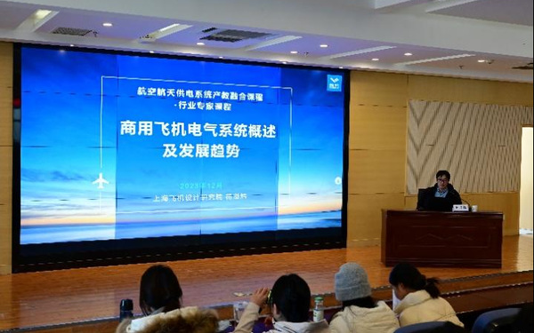 杨溢炜总师围绕“航空航天供电系统”产教融合课程计划,结合自身在大飞机电气系统领域丰富的一线研发经验,分别从商用飞机研制特点、国内商用飞机现状、飞机电气系统技术与产业现状以及新技术应用及发展趋势等四个方面进行了授课,结合我国ARJ21支线客机、最新的C919干线客机和在研的C929远程宽体客机可公开的内容,以及国外多电客机实践案例,生动明晰地讲述了商用飞机电气系统面向真实应用环境的设计过程和诸多考虑因素,进一步展望了电动航空及其电气系统前沿领域,课程内容具有鲜明的应用性、实践性和前沿性。