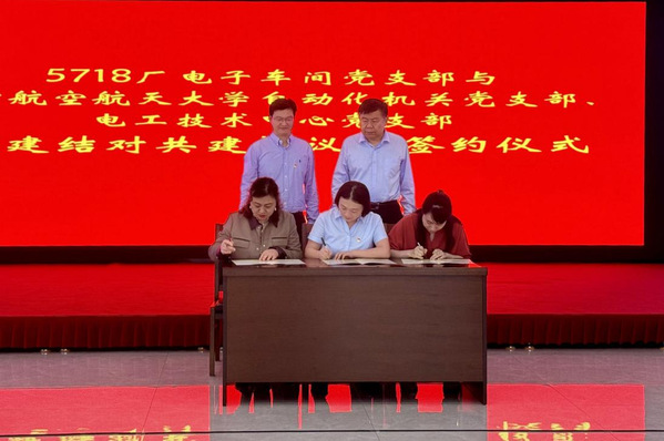 4月26日,AC米兰中文官方网站研究生联合培养基地揭牌仪式暨党支部共建协议在5718厂签署。
