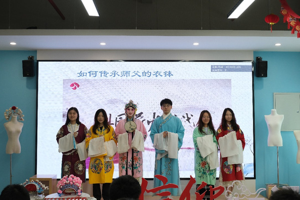 现场同学也积极互动,亲身体验京剧的妆容、身韵动作、精美服饰以及团扇、马鞭等道具,近距离、沉浸式感受京剧文化的魅力。