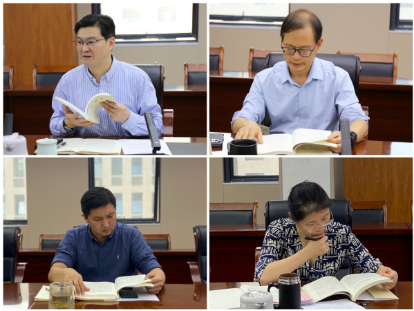 最后,中心组举行了专题读书班,全体与会人员原文研读习近平同志《论教育》。