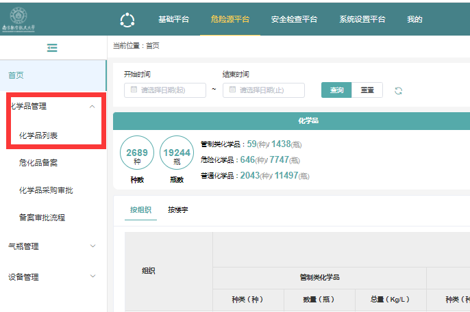 四、PC端查看本单位易制毒、易制爆、一般危化品、普通化学品的统计数据