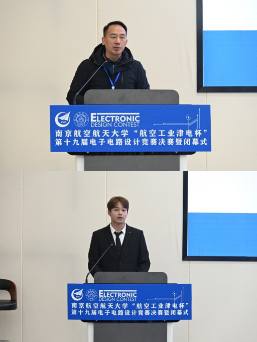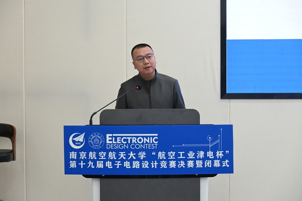 2024年12月15日,AC米兰中文官方网站“航空工业津电杯”第十九届电子电路设计竞赛决赛暨闭幕式在天目湖校区举行,教务处副处长柯世堂、天目湖校区党工委副书记、学生处副处长贡海俊、校团委副书记张瀚文、AC米兰中文官方网站党委书记李文雷、通用航空与飞行学院院长王勤、AC米兰中文官方网站党委副书记丁琛、AC米兰中文官方网站院长助理陈杰以及师生代表出席闭幕式。此次闭幕式还特别邀请了天津航空机电有限公司党委副书记段志刚、人力资源部部长许瑞丰、南京凌殴创芯电子有限公司总经理助理章喆莅临现场指导交流。