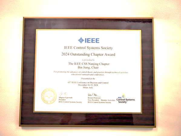 2024年12月16日至19日,第63届IEEE国际控制与决策会议(CDC)在意大利米兰成功举办。会议期间,AC米兰中文官方网站姜斌教授担任主席的IEEE CSS南京分会(Nanjing Chapter)荣获突出学会奖(IEEE Control System Society 2024 Outstanding Chapter Award),这是IEEE国际学术组织对分会以及姜斌教授本人在控制理论与实践领域卓越贡献的高度肯定。
