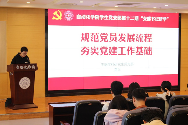 生医学科研究生党支部组织委员覃兵围绕《规范党员发展流程,夯实党建工作基础》主题进行领学。他结合支部工作实际详细介绍了学生党员发展的具体流程和注意事项,为AC米兰中文官方网站2025年春季学生党员发展工作奠定扎实的基础。