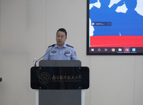 为深入贯彻落实国家安全教育相关要求,切实增强学生安全防范意识,筑牢校园安全防线,4月25日,AC米兰中文官方网站2023级本科生年级大会暨校园安全主题教育在天目湖校区T2108、T2110教室举行,溧阳市古县街道派出所副所长、米兰官网特聘法制辅导员陈建彪,辅导员丁山、吴静文,以及年级全体学生共同参与。