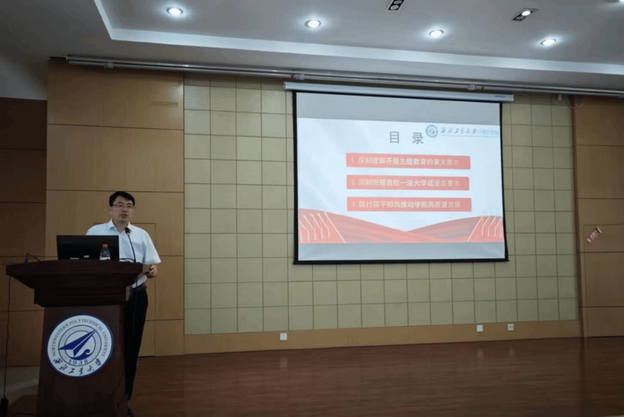 李春科从深刻理解开展主题教育的重大意义、深刻把握我校一流大学建设总要求、践行实干担当推动学院高质量发展三个方面展开论述。一是通过深入阐述开展主题教育的时代背景、重大意义和总要求,习近平新时代中国特色社会主义思想的科学体系、丰富内涵和精髓要义,学院在推动学院主题教育走深走实方面的具体行动等,带领师生在学思践悟中站稳政治立场、坚定政治方向,鼓励师生争做“四有”好老师和有理想、有本领、有担当的新时代青年。二是围绕习近平总书记“要把高等教育作为建设教育强国的龙头”的要求,传达最近学校党委书记李言荣主题教育专题党课精神,深刻把握学校“双一流”建设和高质量内涵式发展的总要求。三是立足于学院实际,通过对标国内外一流高校,分析学院在发展中存在的问题与差距,坚持问题导向、目标导向,梳理下一步的发展思路和重要举措,以建设一流学院、一流学科为目标,奋力谱写beat365中文唯一官网建设新篇章。