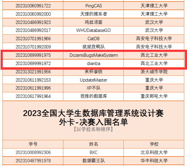 这两只赛队的指导老师均是大数据存储与管理工业和信息化部重点实验室的核心成员,分别是张利军、赵晓南、刘文洁和李宁老师,该团队自主研发的的国产分布式数据库已经在交通银行上线应用,获得了教育部科技进步一等奖。组内研究生还获得了2022年度OceanBase大赛的亚军,体现了该团队数据库的研发实力。