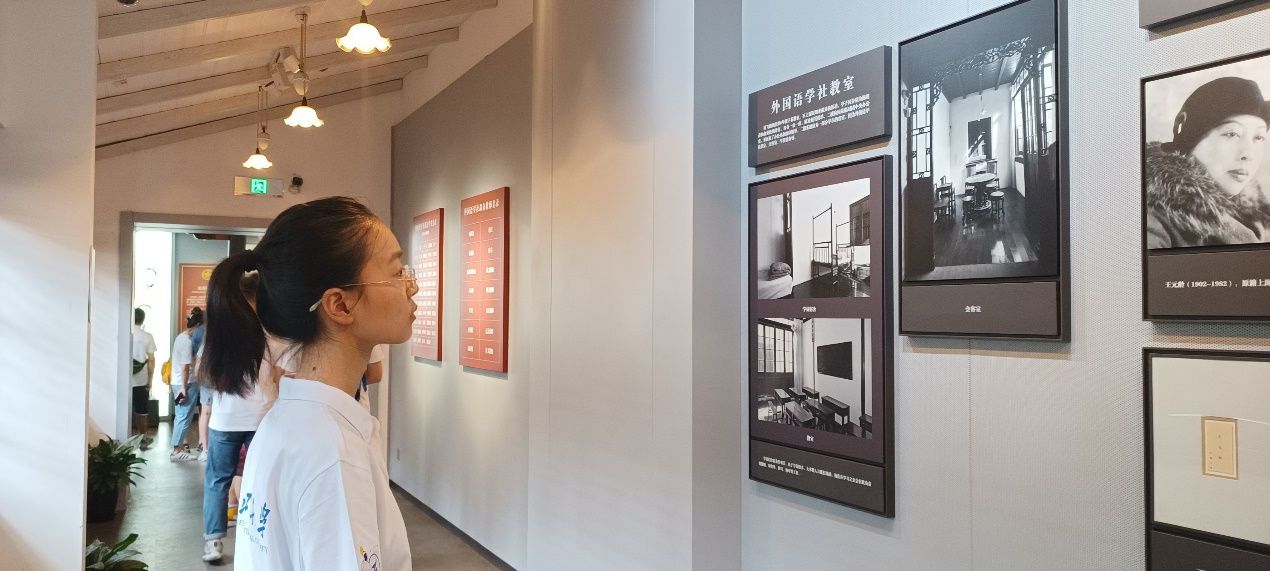 穿过狭窄的弄堂,迈进石库门建筑的大门,实践队员进入了纪念馆内部。从序厅到中国青年英模展厅,从上海青年运动史展厅到“渔阳里”历史展厅,一个个实物、一件件模型、一段段文字,无声地阐述着百年前的青年如何用青春的热血书写永恒的辉煌。在这里诞生了中国第一个青年团组织“上海社会主义青年团”,创办了中国共产党第一所干部学校“外国语学社”,建立了中国共产党第一个通讯社“中俄通讯社”。 凝视着这些珍贵史料,实践队员们仿佛走进了那段波澜壮阔的历史长河,见证着革命青年前赴后继、救国图强的奋斗与牺牲。