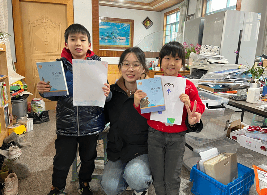 23级本科生焦乐颖深入家乡留守儿童的家庭,与她们共同绘画出一家人团圆饭过年的温馨画面。随后,焦乐颖又与留守儿童组成美好小队,一同前往一名乡村中学的教师黄老师家中,并与老师一起品悦世界名著、贴春联、贴窗花、下象棋、唱歌,诚挚感谢黄教师对乡村儿童的辛勤付出和无私奉献,一系列活动也激发了留守儿童积极向上的斗志和梦想,也让受帮扶儿童新年不孤单,拾起自信,绽放笑脸。