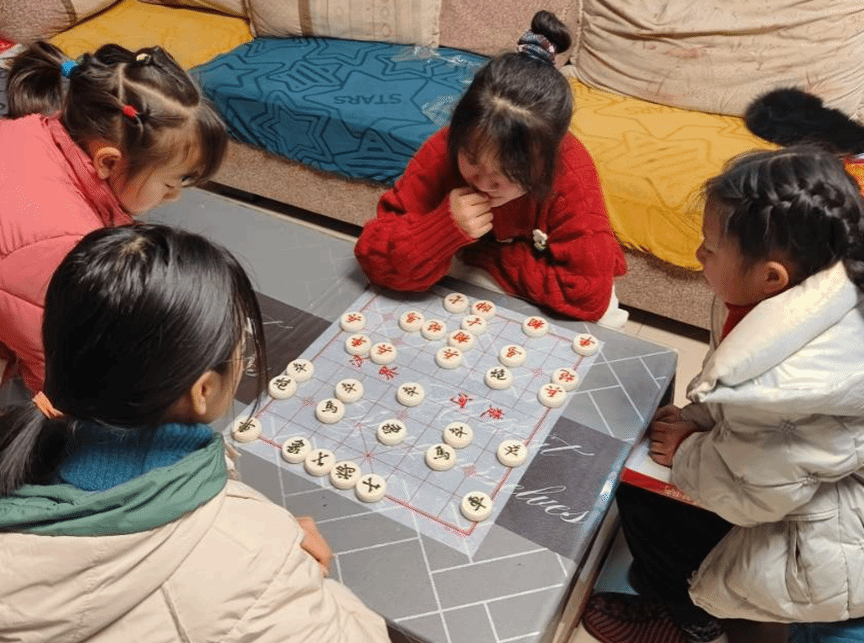 焦乐颖与小朋友一起下象棋