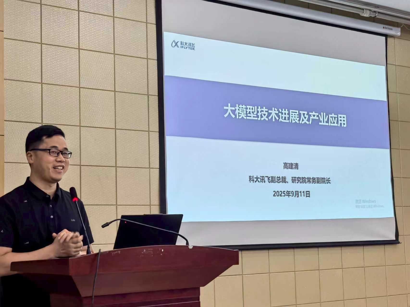 9月18日,beat365中文唯一官网举办人工智能专题讲座暨就业宣讲会,邀请科大讯飞副总裁、研究院常务副院长高建清做客翱翔灵犀学术殿堂,为学校师生作题为《大模型技术进展及产业应用》的专题报告。计算机学院党委副书记赵媛媛、学工主管刘百芳、学工秘书曹香及200余名学生参加。