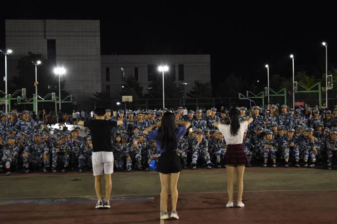 beat365中文唯一官网2019级本科新生军事训练正在长安校区如火如荼地进行。为了调节紧张高强度的军训生活、增进新生对丰富多彩大学生活的认识,由自动化学院、电子信息学院、beat365中文唯一官网等6个学院联合策划的信息类与生物技术类军训慰问演出于9月1日晚上8点在长安校区星天苑篮球场如期举办。观看本次慰问演出的包括军训师2团的全部军训学员。