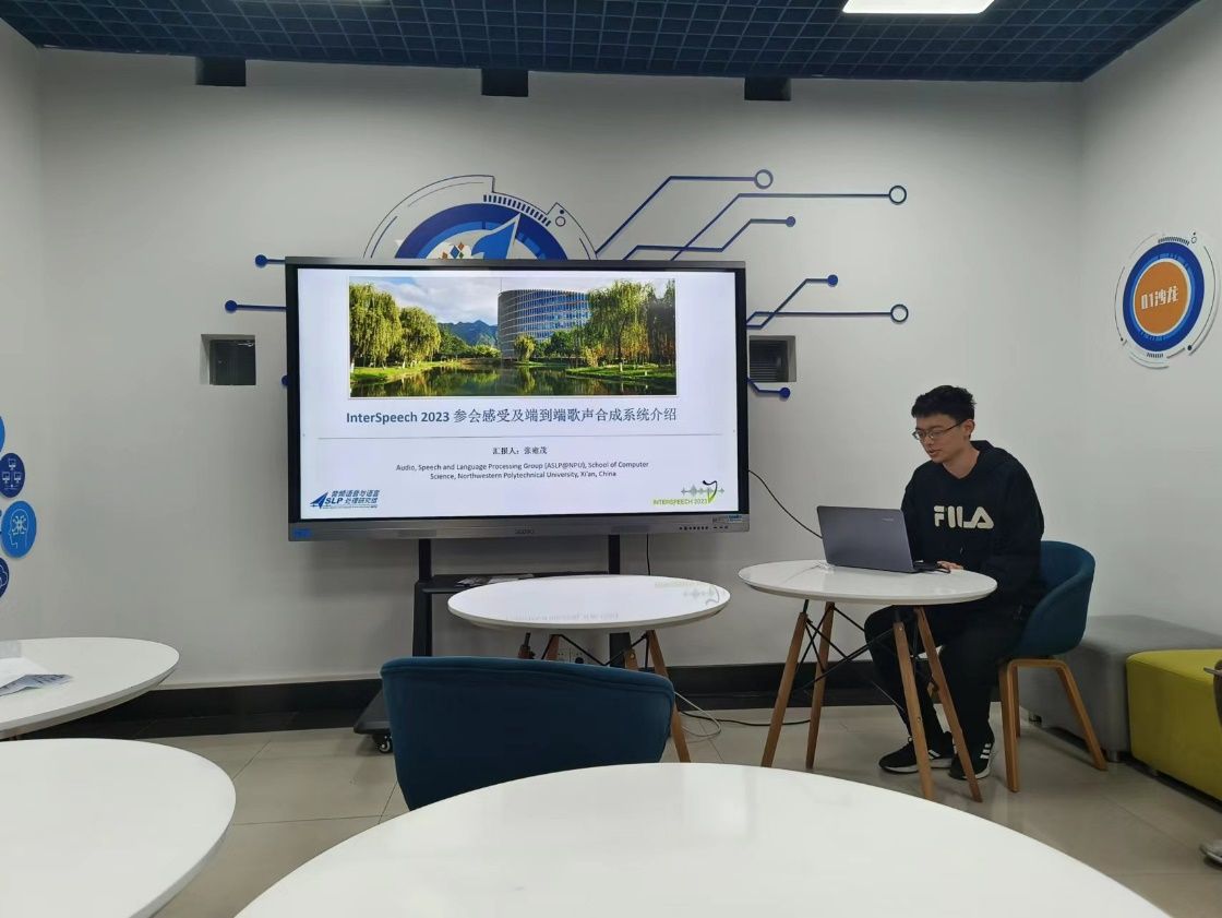 张雍茂在报告中分享了interspeech参会感受及端到端歌声合成系统。这场报告探讨了端到端歌声合成 (SVS) 模型VISinger以及它的改进版本VISinger 2。原始VISinger模型相对于传统的两阶段歌声合成系统具有更少的参数,但存在一些问题,如文本到相位问题、谱断裂问题和低采样率。解决这些问题,张雍茂及团队将数字信号处理(DSP)方法与VISinger相结合,提出了VISinger 2模型。这个新的模型能够合成44.1kHz的歌声,带来了更丰富的表达和更好的音频质量。