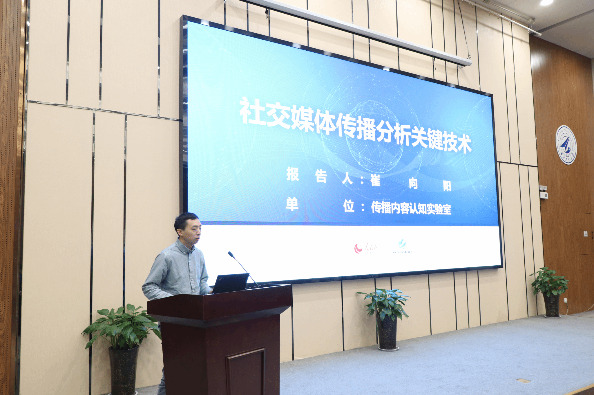 崔向阳研究员聚焦于社交媒体传播分析中的关键技术,介绍了人民日报社传播内容认知全国重点实验室的相关研究成果。