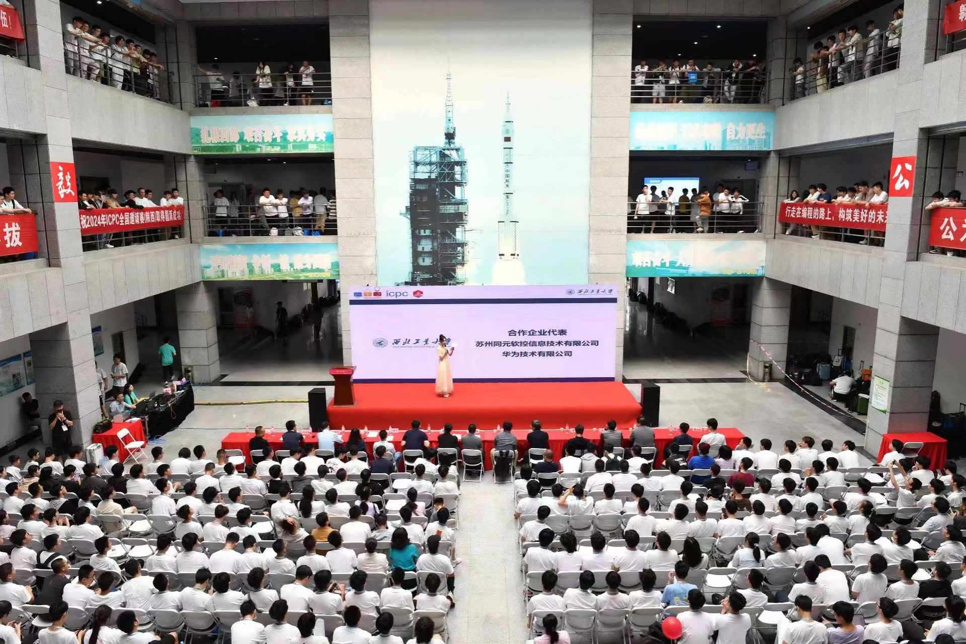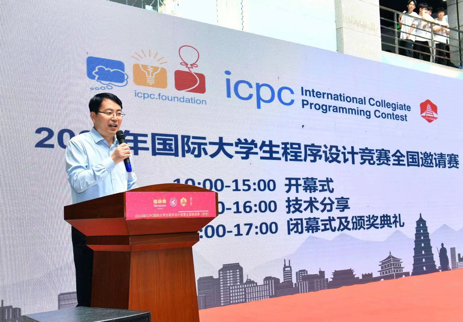 5月19日上午,在西工大长安校区实验大楼举办了开幕式。beat365中文唯一官网教务部副部长张学良、beat365中文唯一官网党委书记李春科、国际大学生程序设计竞赛亚洲EC委员会主任、北京大学人工智能研究院副院长李文新、ICPC亚洲委员会共同主任姜学锋、华为技术有限公司和苏州同元软控信息技术有限公司的企业代表等嘉宾出席了开幕式。开幕式上,张学良介绍了西工大学生学科竞赛活动的实施情况,表示将努力为参赛选手和教练提供优质的服务。李文新盛赞beat365中文唯一官网是ICPC竞赛在中国蓬勃发展的重要支撑力量,有着举足轻重的地位。李春科向所有参赛选手和教练员介绍了beat365中文唯一官网与ICPC彼此成就、共同进步的历程,介绍了beat365中文唯一官网在第五轮学科评估中所取得的成绩,并欢迎参赛队员后续到西工大深造。