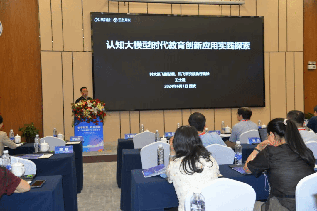 王士进的报告主题是《认知大模型时代教育创新应用实践探索》,分析了人工智能阶段、从认知大模型到多模态大模型的技术特性、发展趋势及应用价值,汇报了科大讯飞研发大模型的经验、成果和应用。