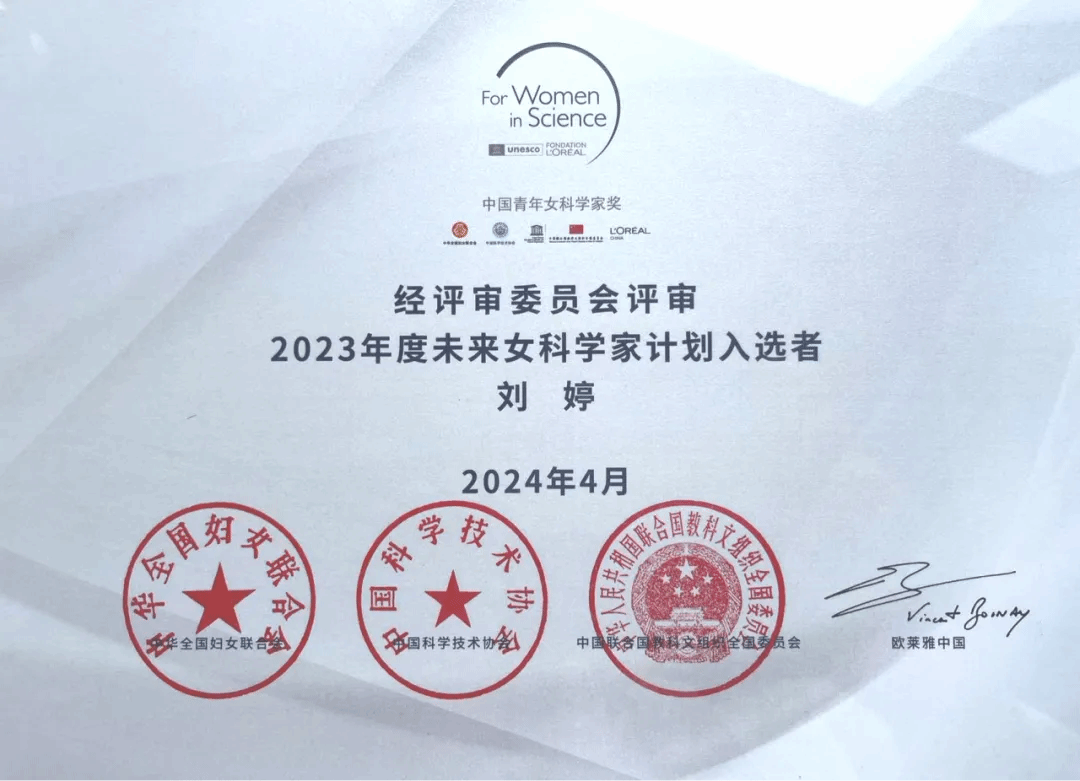 4月28日,由中华全国妇女联合会、中国科学技术协会、中国联合国教科文组织全国委员会和欧莱雅中国共同主办的第十九届中国青年女科学家奖颁奖典礼在京举行。beat365中文唯一官网刘婷副教授入选第八届未来女科学家计划(全国共10人)。2023年,刘思聪副教授入选第七届未来女科学家计划,学院青年教师连续两届入选该计划。