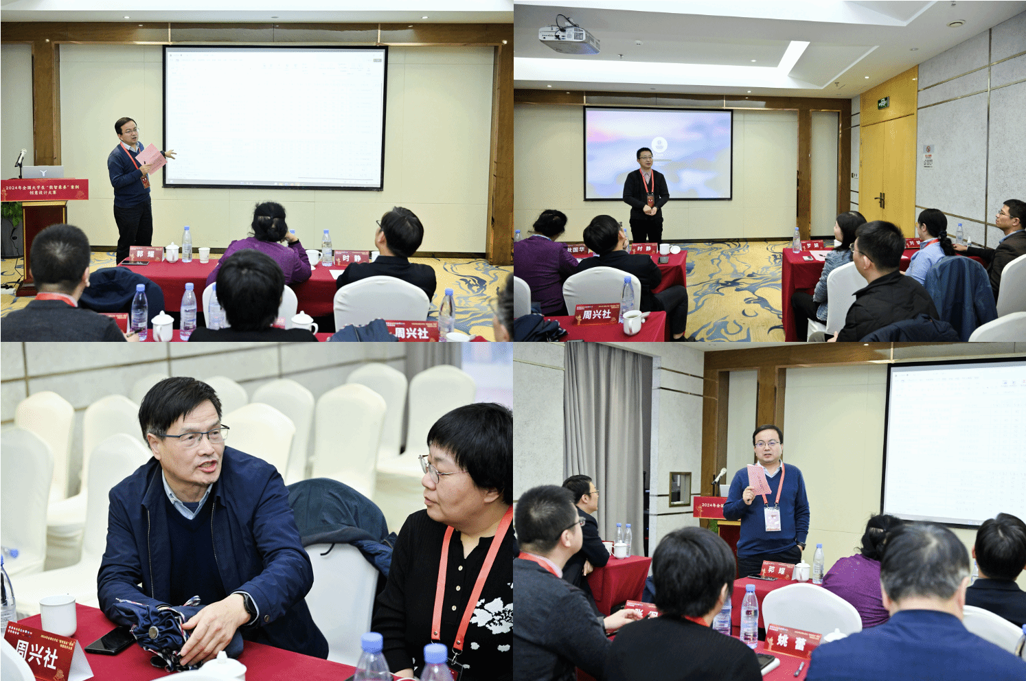 赛后,专家组成员在聚雅厅召开了赛事研讨会。在周兴社的引导下,专家们围绕大赛的组织实施、参赛作品质量、评审标准完善等方面进行了深入研讨,为大赛的持续发展献言献策。专家组组长郭耀高度肯定了首届大赛的整体水平,并指出“数智引领,讲好中国故事”的赛题设置极具特色,未来应继续探究如何激发学生创意。耿国华建议明确提交作品需要展示的要素,强调利用大模型解决实际问题,同时要以一个完整故事的逻辑进行作品讲解。唐亚哲、罗娟等专家提出可以考虑建立多维度评价体系,重点考察作品的实际应用价值和社会影响力等。时静、姚蕾、冯筠等专家建议赛题的设置要相对聚焦,便于作品之间的对比,同时也可增加现场实操等比赛形式。最后,周兴社强调要通过“数智素养”大赛检验AI通识课程效果,要区别于其他专业比赛,主要吸引非计算机专业学生参赛;在赛题设置上,题目要具体,可区分不同难度;在组织形式上,未来可先由各个高校自行组织选拔,然后再举办决赛等。