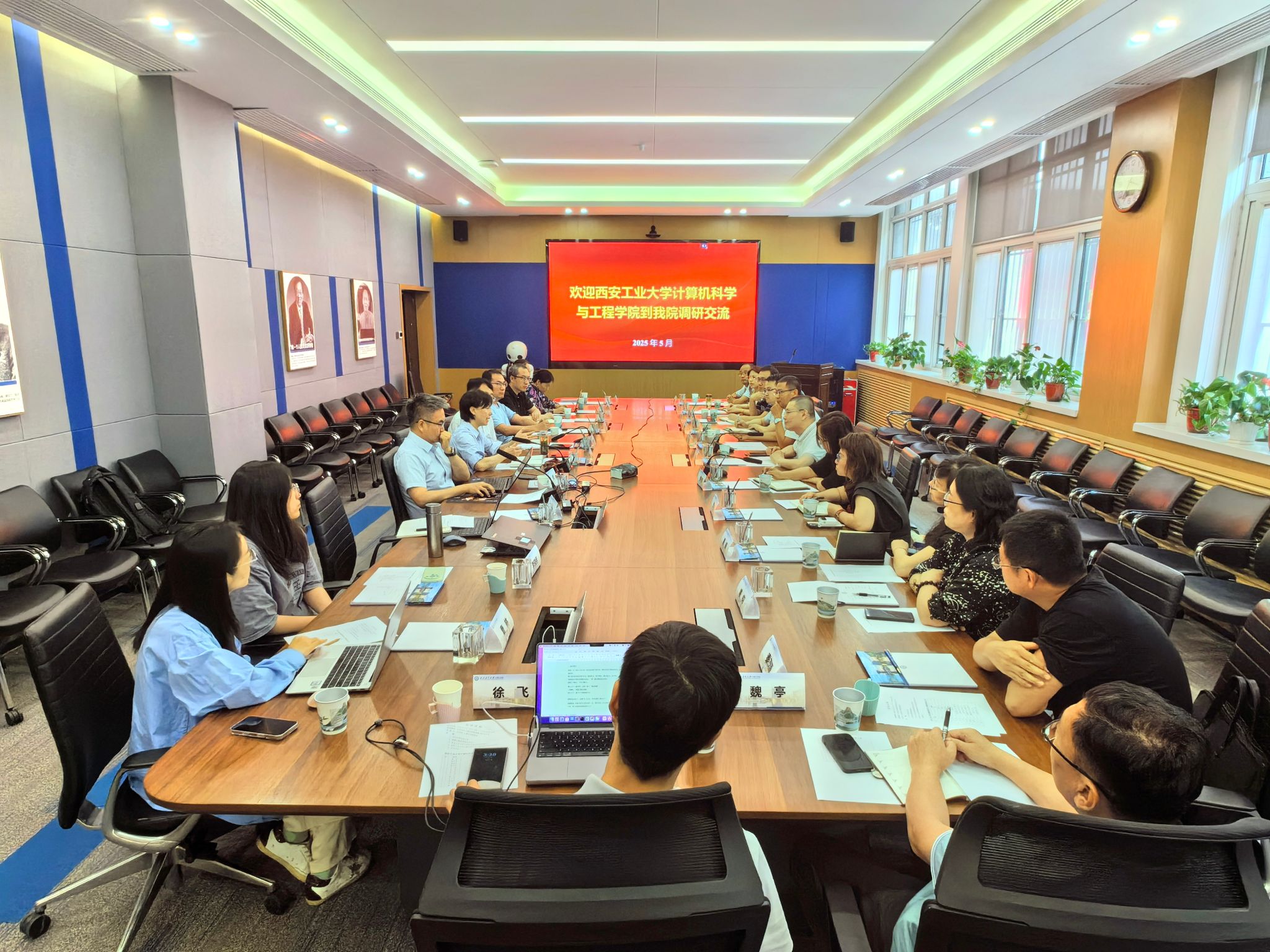 5月19日下午,西安工业大学计算机科学与工程学院院长曹岩、党委书记杨正强带领领导班子及系主任一行13人到beat365中文唯一官网调研交流,院长尚学群、党委书记李春科、副院长夏勇及有关人员参加了调研座谈,会议由尚学群主持