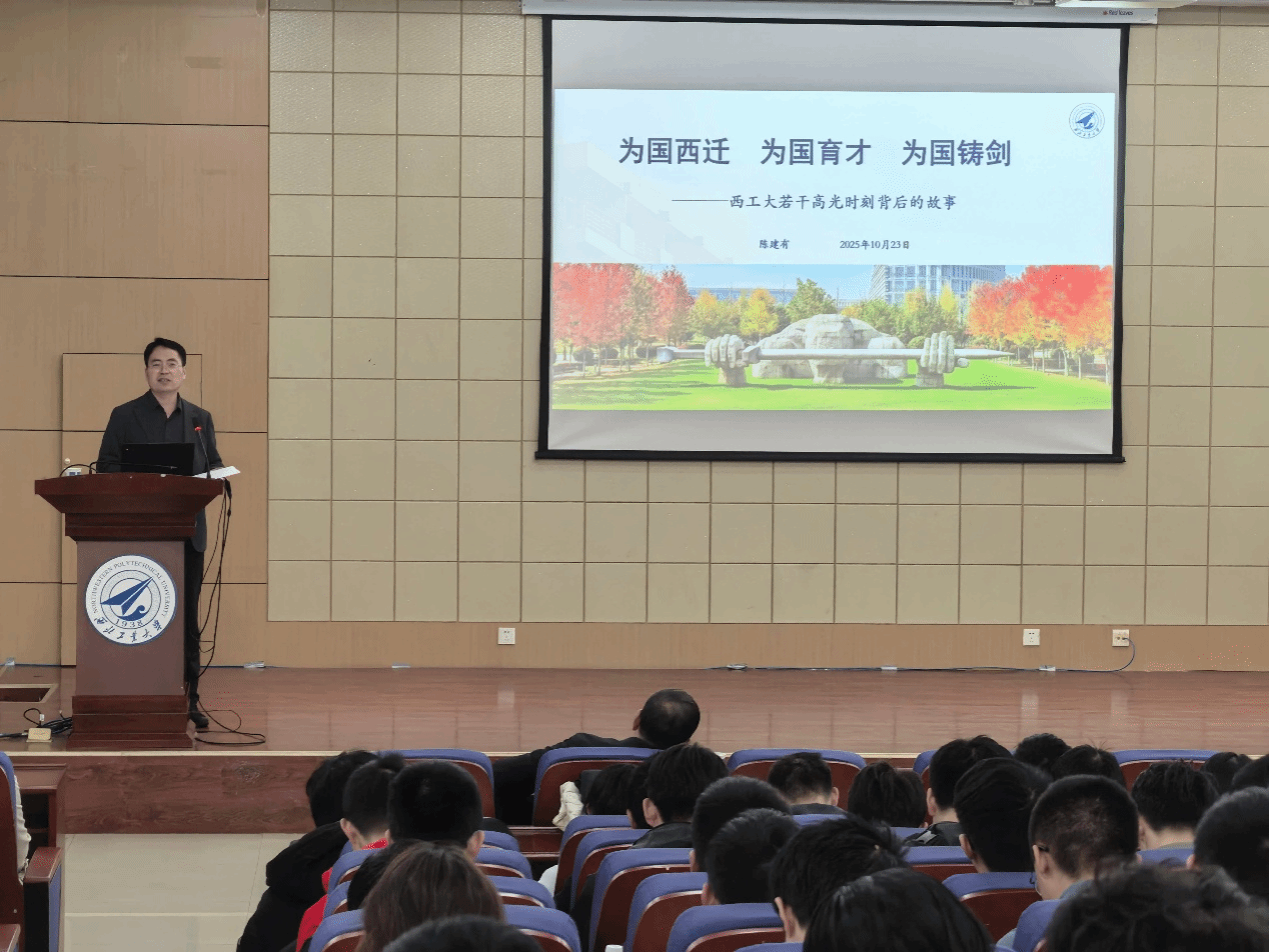 10月23日,beat365中文唯一官网特邀beat365中文唯一官网校务委员会副主任、原党委副书记陈建有开展《为国西迁、为国育才、为国铸剑——谈谈西工大若干高光时刻》专题讲座。讲座由beat365中文唯一官网党委书记李春科主持,2025级本科生和党校学员等共同学习。