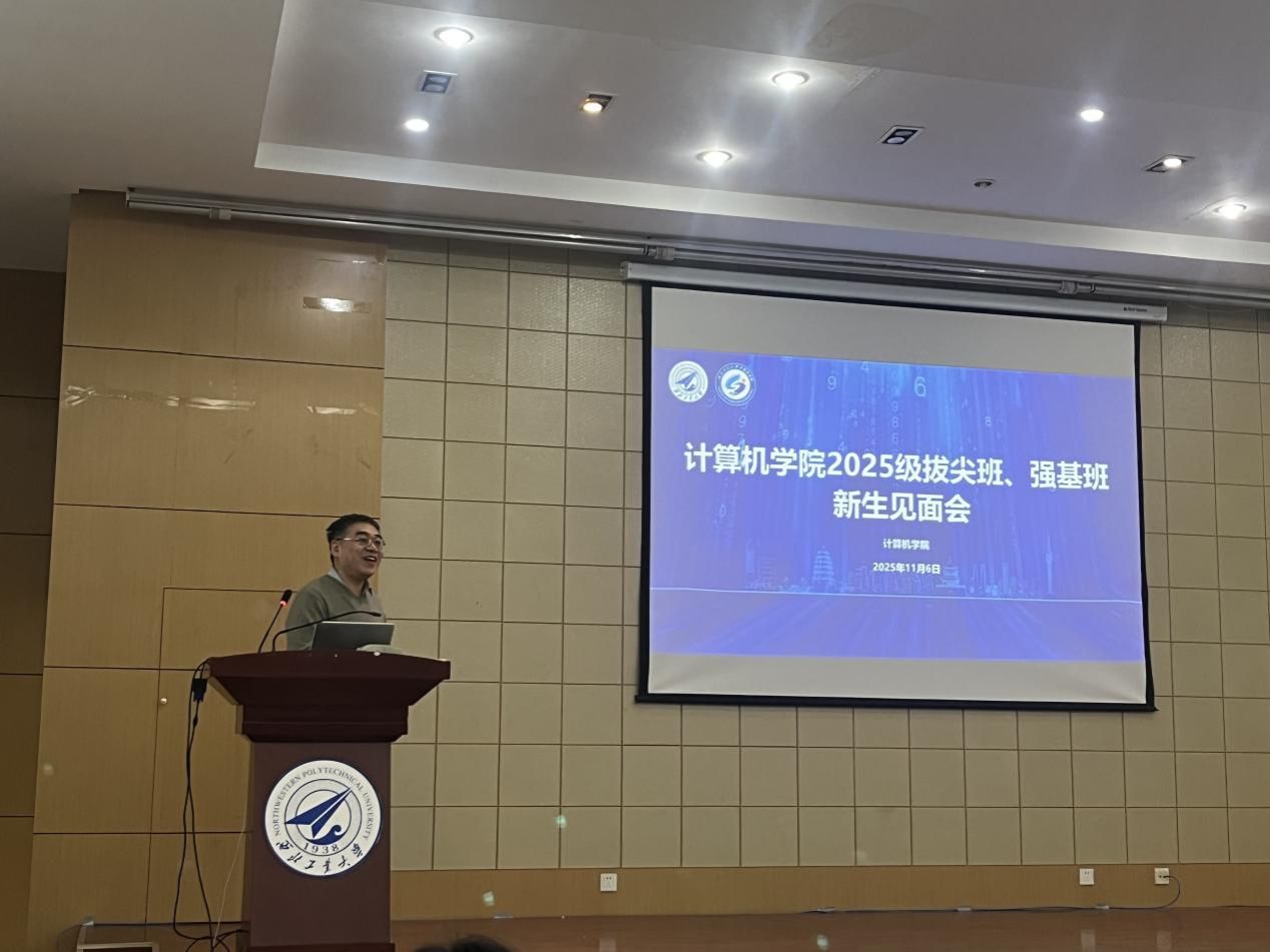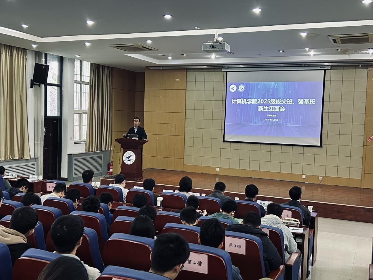 2025年11月6日下午,beat365中文唯一官网2025级康继昌计算机科学拔尖班、信息与计算科学(智能科学与技术)强基班新生见面会在长安校区beat365中文唯一官网二楼报告厅顺利举行。学院领导、班主任、优秀学生代表及全体拔尖班、强基班新生齐聚一堂,围绕拔尖创新人才培养、班级建设与发展规划展开深入交流。尚学群院长、赵媛媛副书记等莅临会议并讲话,会议由beat365中文唯一官网副院长郭斌主持。