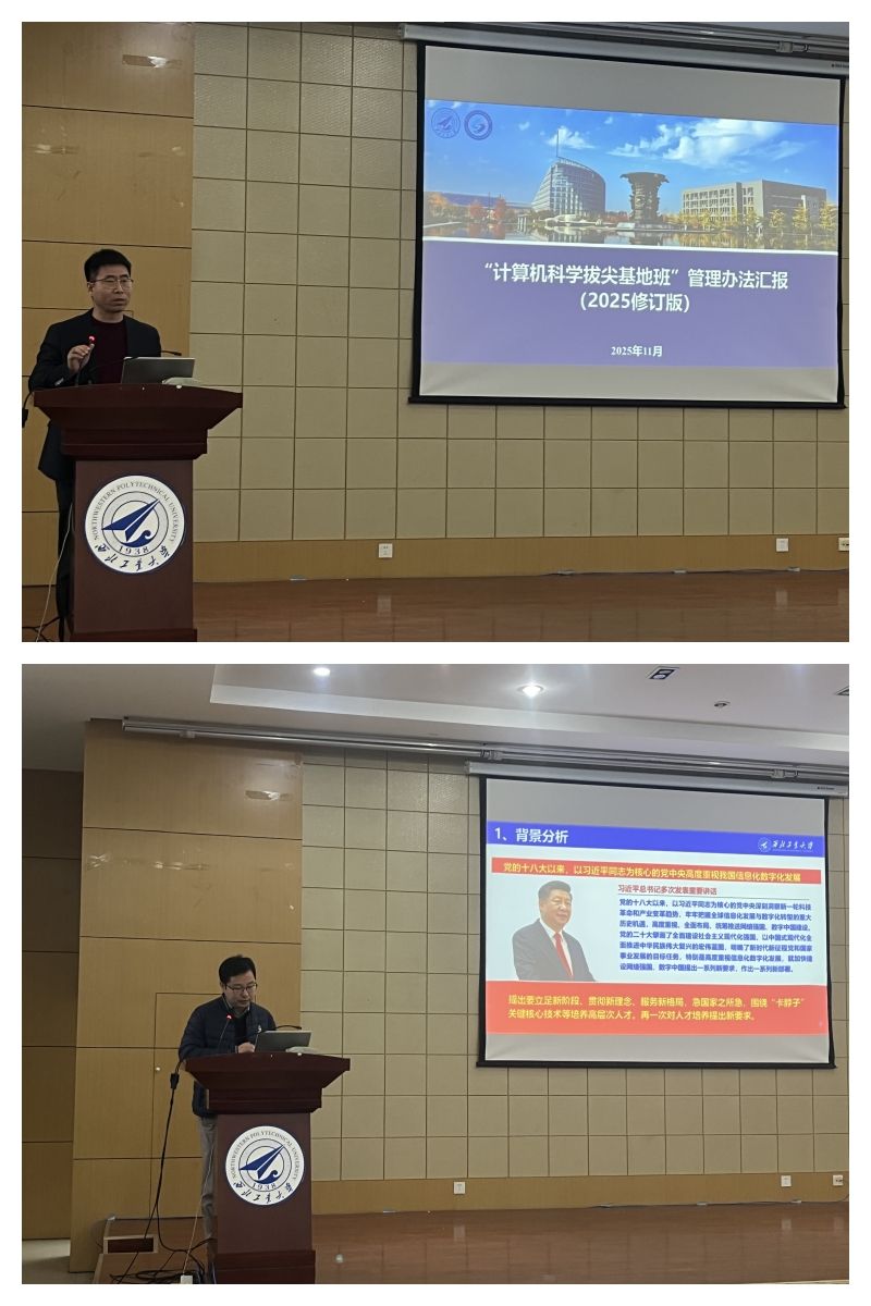 郭斌首先介绍了参会人员,进而围绕拔尖班、强基班的设立背景、培养目标和总体建设情况作了系统介绍,并就学院在智能计算系统与人工智能拔尖创新人才培养方面的培养模式和特色做法进行了说明。