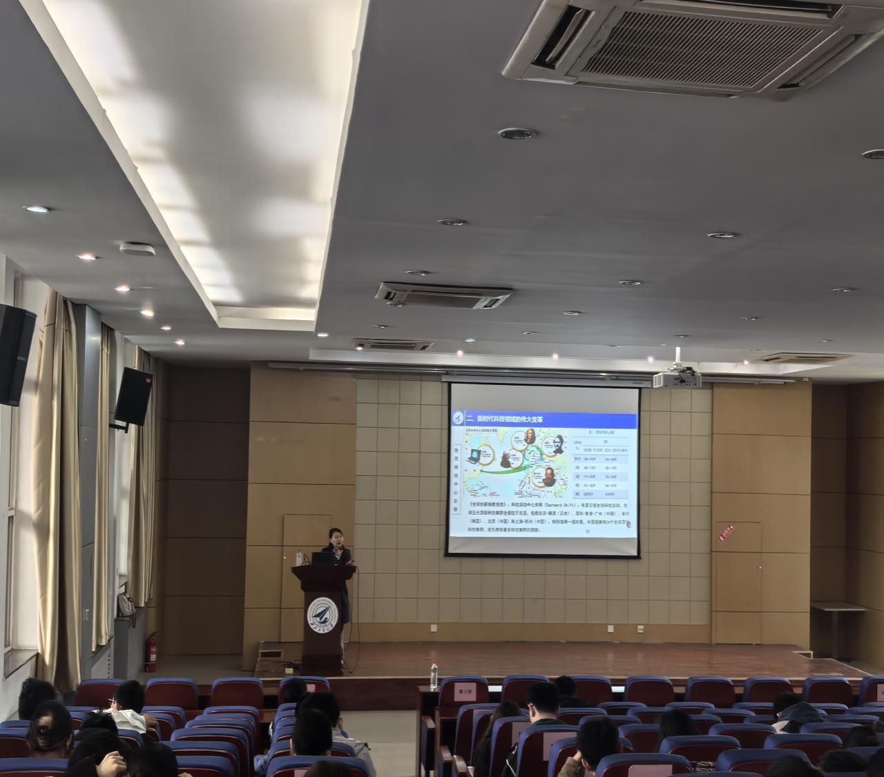 课上,杨老师首先以党的二十大报告为核心,系统解读党和国家在科技领域的顶层设计。她指出,党的二十大将“实施科教兴国战略,强化现代化建设人才支撑”单列章节,明确“教育、科技、人才是全面建设社会主义现代化国家的基础性、战略性支撑”,提出“科技是第一生产力、人才是第一资源、创新是第一动力”的重要论断,并部署深入实施科教兴国、人才强国、创新驱动发展三大战略,加快建设教育、科技、人才三大强国。同时,结合党的二十届三中全会“构建支持全面创新体制机制”的要求与“十五五”规划相关部署,专家详细阐释了我国在深化科技体制改革、强化企业创新主体地位、完善科技金融体系等方面的具体举措,让同学们清晰认识到国家推动科技创新的系统性布局。