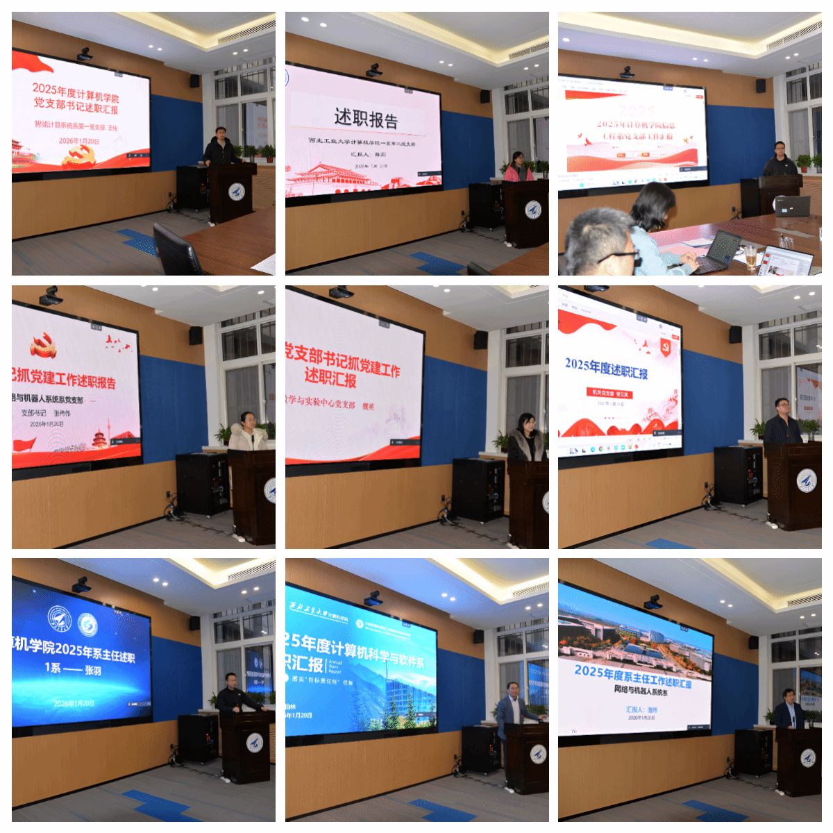 1月20日下午,学院召开了系主任、党支部书记工作述职测评会。各系系主任、副主任围绕2025年度重点工作和目标责任制中期考核各项指标完成情况,从学科建设、人才培养、师资队伍、科学研究、国际合作等方面进行了述职交流。各党支部书记围绕“五个突出”,对上年度述职评议点评查摆问题整改情况、工作中存在的问题和下一步工作计划等进行了述职。